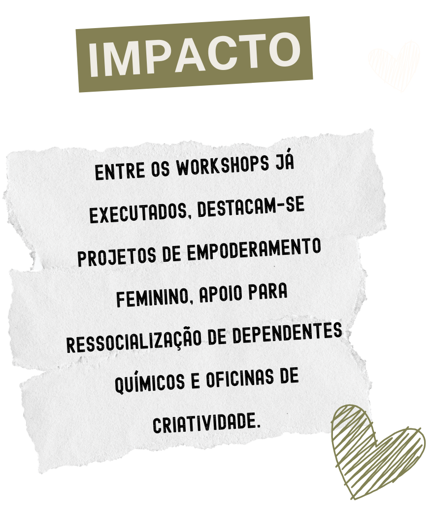 Busco esse propósito aliando a prática de trabalhos manuais ao reaproveitamento de resíduos sólidos, trazendo maior consciência ambiental ao público beneficiário e instituições parceiras envolvidas, além de promover a reconexão pessoal daqueles que participam das atividades propostas.